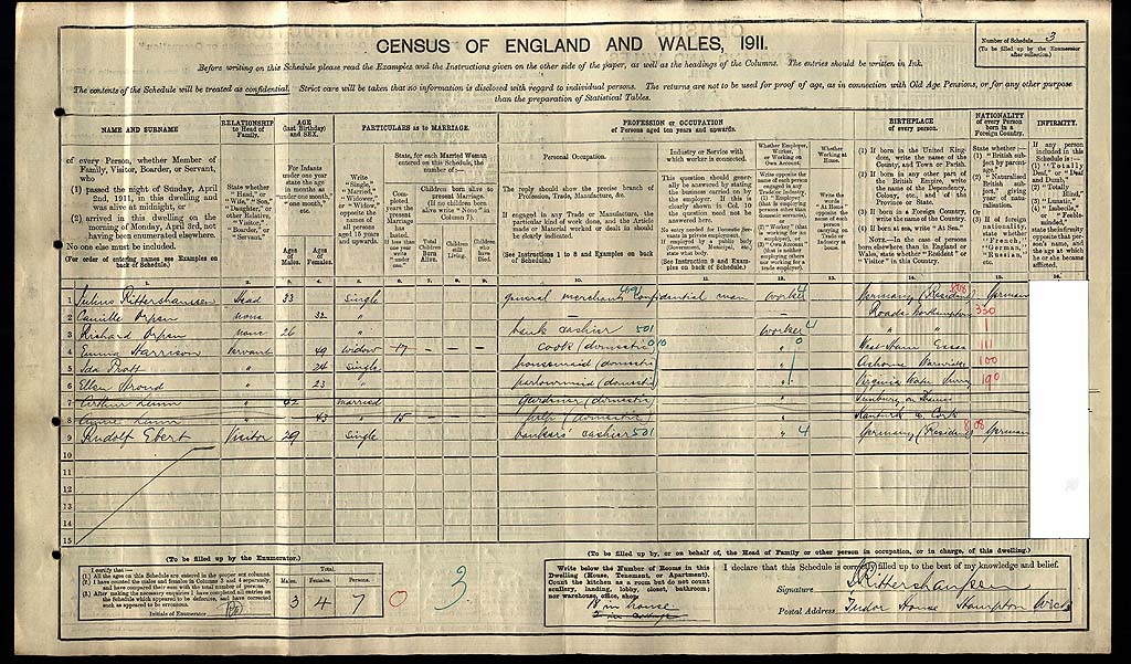 1911 Census Schedule # 3